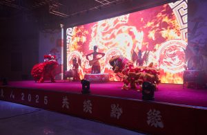 ? ? ? ? 晚會現場,澎龍電池的品牌視覺體系與中秋氛圍巧妙融合,形成沉浸式品牌體驗。舞臺主背景、簽到區背板等核心視覺點位均呈現“澎龍電池”主贊助商標識,強化品牌曝光。餐桌上定制水飲、物料包裝等細節處融入企業VI元素,于細微處傳遞品牌溫度。
